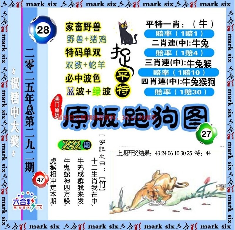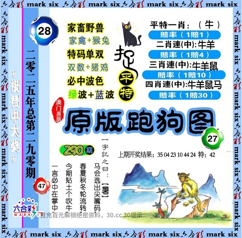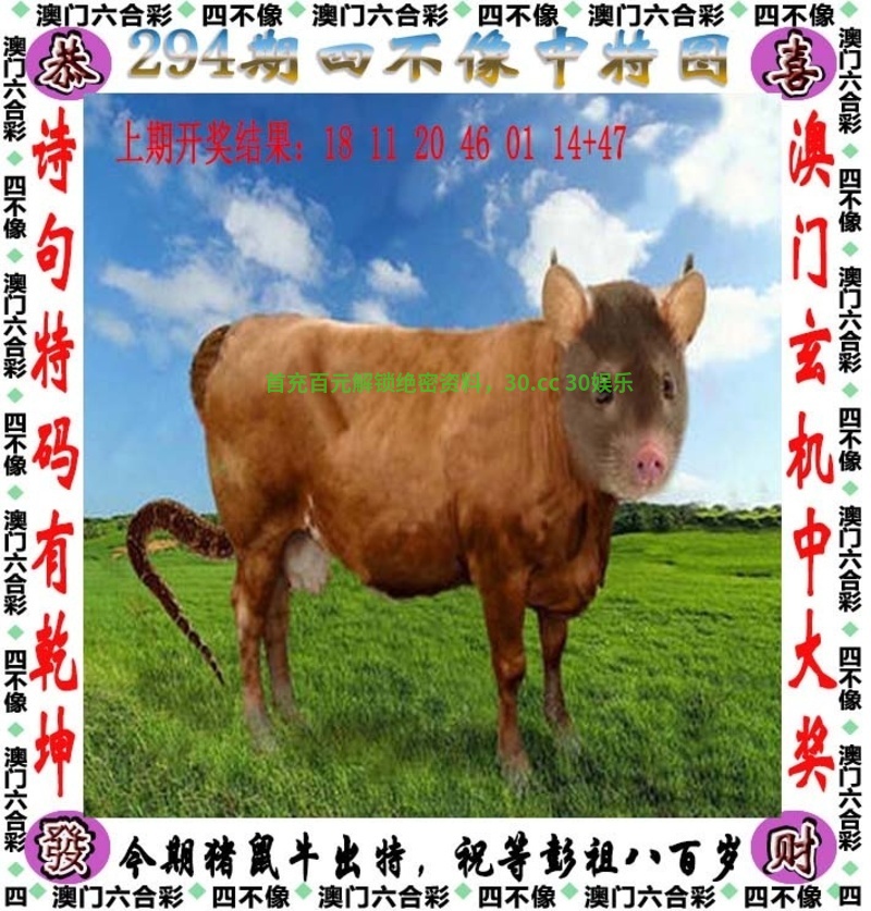 294期八肖兔猴牛羊马鸡猪狗开:發00