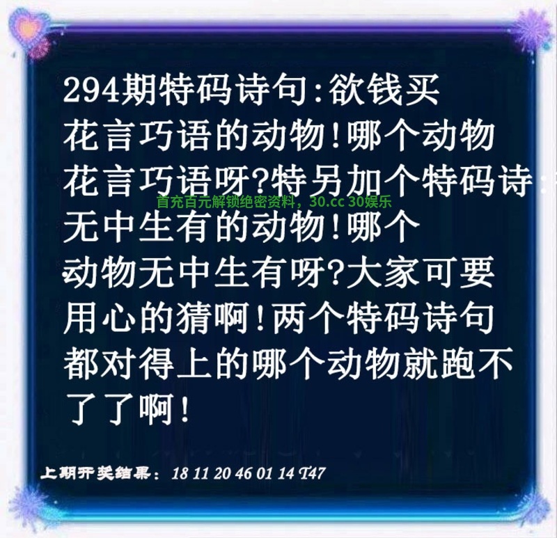 294期:壹码中特【最准单双】294期:频果报网【家野中特】